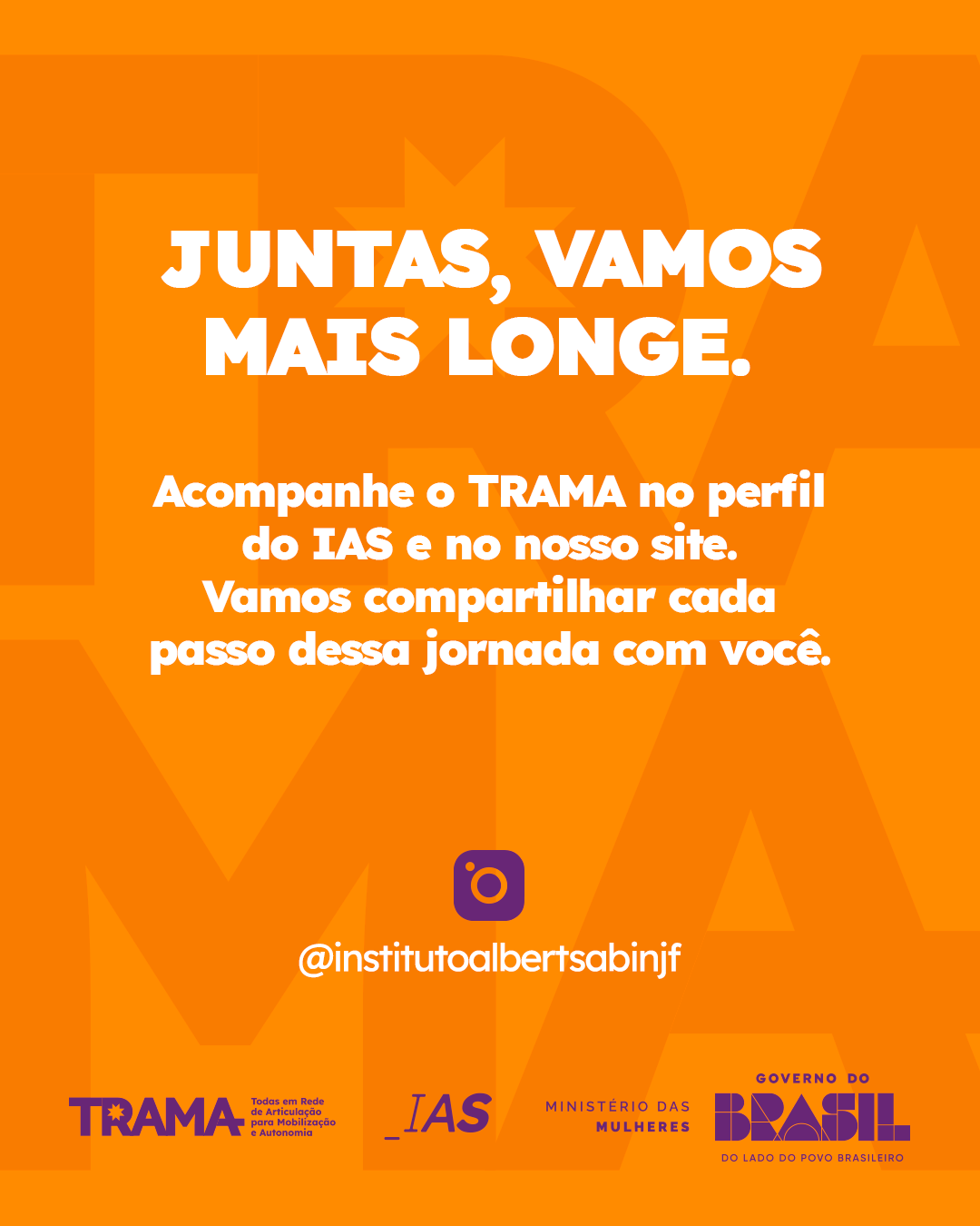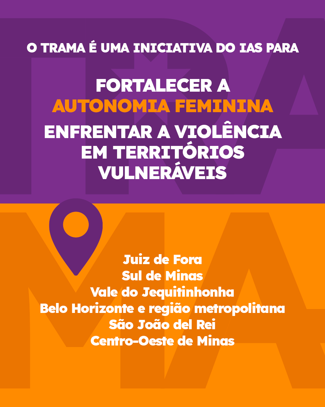 É com muito orgulho que o IAS apresenta o TRAMA — uma iniciativa voltada ao fortalecimento da autonomia feminina e ao enfrentamento da violência contra mulheres em territórios vulneráveis de Juiz de Fora, Sul de Minas, Vale do Jequitinhonha, Belo Horizonte e região metropolitana, São João del Rei e Centro-Oeste de Minas