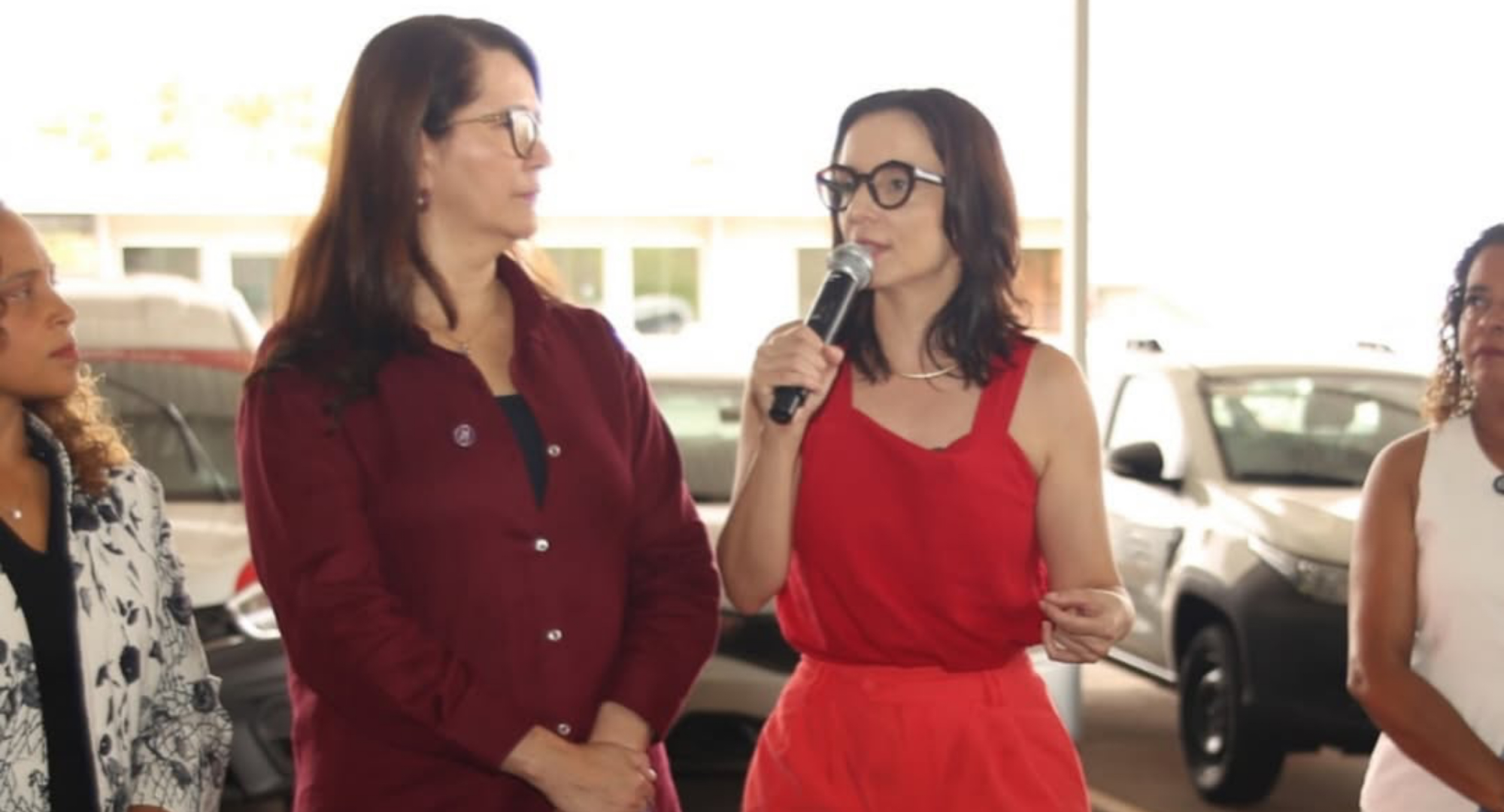 Durante a cerimônia, contamos com a presença da Exma. Vice-ministra do Ministério das Mulheres, Eutália Barbosa Rodrigues Naves, representando o Governo Federal, da deputada federal Ana Pimentel, além das deputadas estaduais Ana Paula Siqueira e Leninha, representantes da Defensoria Pública de Minas Gerais. Autoridades de 23 cidades mineiras vieram de várias partes do estado para receberem os veículos que equiparão delegacias especiais de mulheres e instituições que atuam no combate à violência contra a mulher.