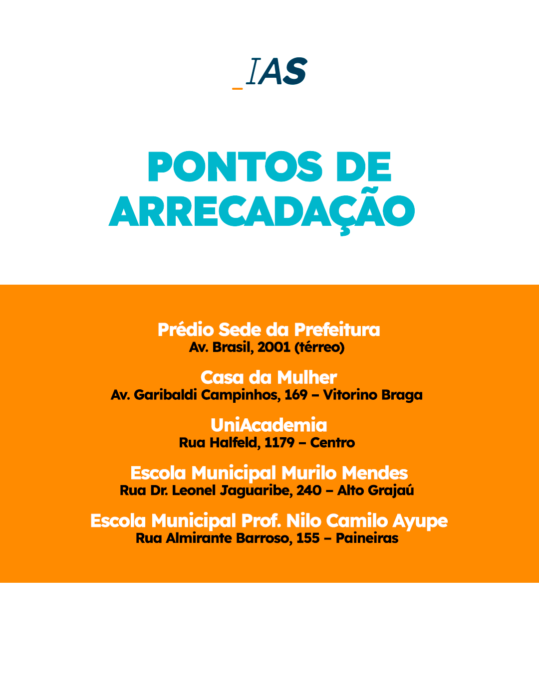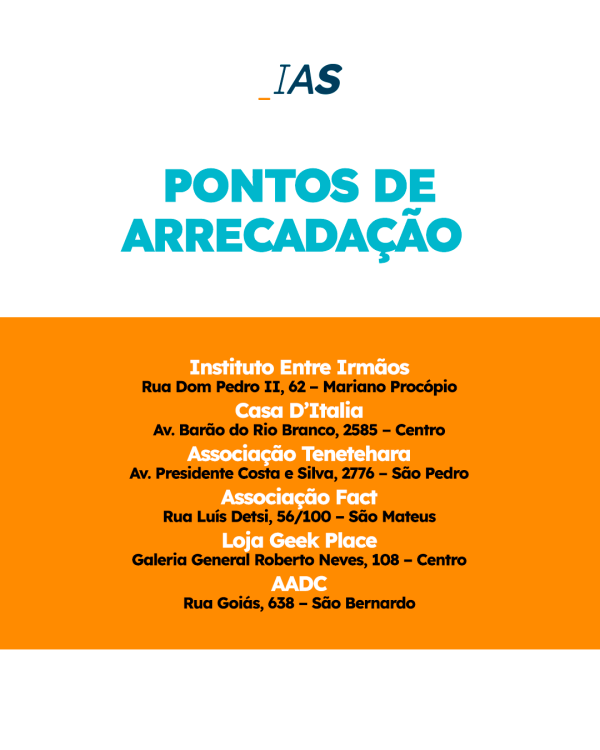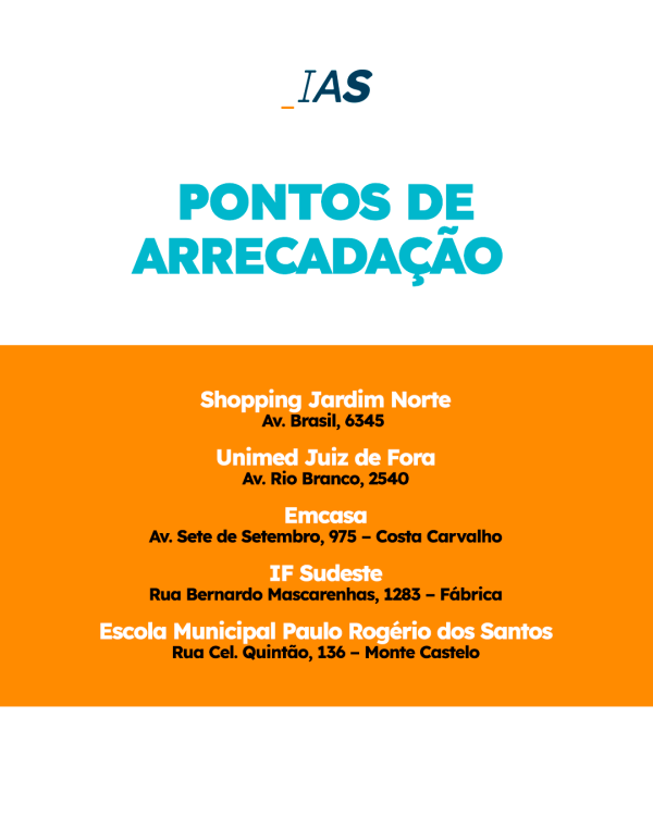 As chuvas em Juiz de Fora deixaram muitas famílias em situação de vulnerabilidade e, neste momento, cada gesto conta. O IAS se solidariza com todas as vítimas e convida você a fazer parte dessa corrente do bem.